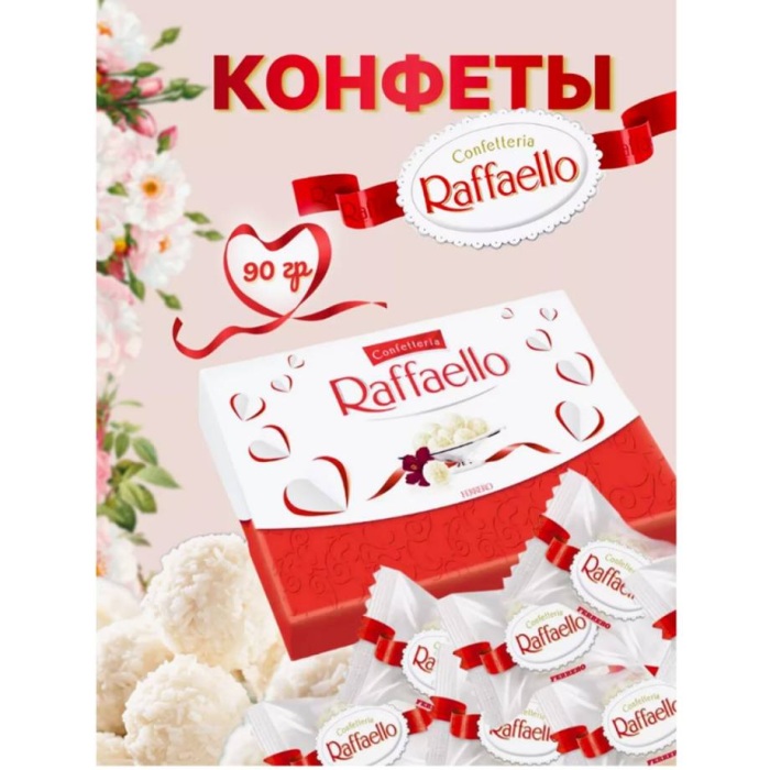 Конфеты RAFFAELLO – это сладкий белый миндаль и отборный кокосовый орех с тропических островов. Используются ингредиенты высочайшего качества.