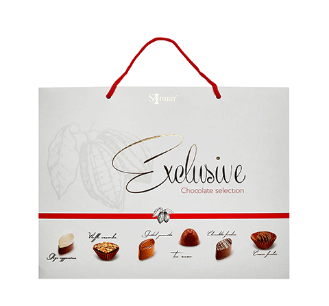 1. Шоколадные конфеты с кремовой начинкой с добавлением молотого кофе и посыпкой из вафельной крошки, 2. Конфеты из молочного шоколада с кремовой начинкой со вкусом чайной розы, 3.Конфеты из молочного шоколада с кремовой начинкой с тертым жареным арахисом, 4. Шоколадные конфеты с кремовой начинкой со вкусом шоколада фондю, 5. Конфеты из темного шоколада с сочетанием белой глазури и с кремовой начинкой со вкусом капучино, 6. Глазированные шоколадные конфеты с кремовой начинкой со вкусом шоколада
