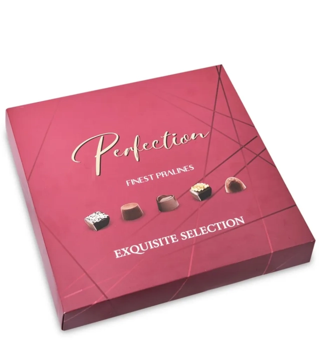 1. Конфеты из молочного шоколада с кремовой начинкой со вкусом шоколада фондю. 2. Шоколадные конфеты с кремовой начинкой из жареного тертого ореха фундука и посыпкой из жареного дробленого ореха фундука. 3. Покрытые шоколадом конфеты типа пралине с жареным дробленым арахисом. 4. Шоколадные конфеты с кремовой начинкой со вкусами сливочного кокоса и ментола и посыпкой из кокосовой стружки. 5. Конфеты из молочного шоколада с кремовой начинкой с тертым жареным арахисом.