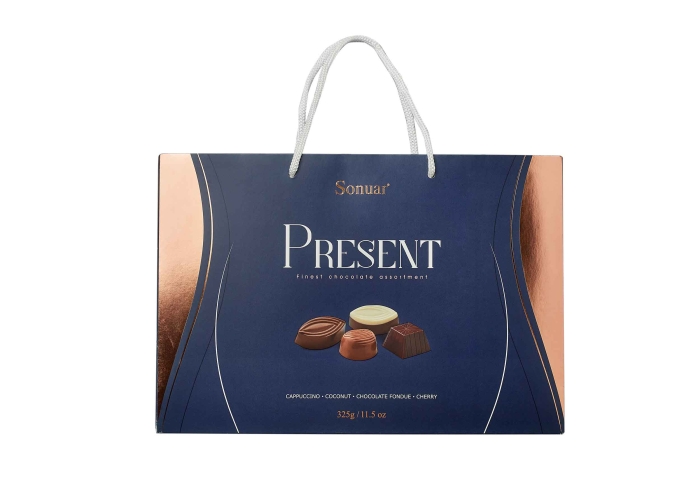1. Шоколадные конфеты с кремовой начинкой с добавлением молотого кофе. 3. Конфеты из молочного шоколада с кремовой начинкой со вкусом сгущенного молока, 4. Конфеты из молочного шоколада с кремовой начинкой со вкусом шоколада фондю, 5. Шоколадные конфеты с кремовой начинкой с тертым жареным арахисом.