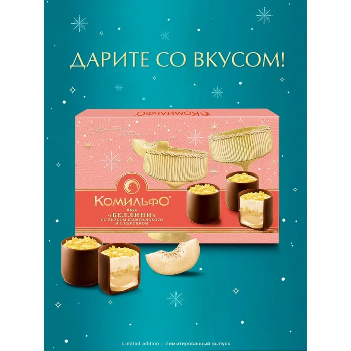 ИЗЫСКАННЫЙ ПОДАРОК – КОНФЕТЫ КОМИЛЬФО® Вкус "БЕЛЛИНИ" ДЛЯ САМЫХ ЯРКИХ МОМЕНТОВ ТОРЖЕСТВА!