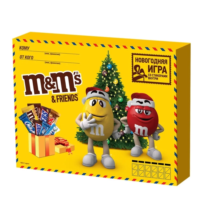 Подарочный набор кондитерских изделий: шоколадные батончики SNICKERS®, SNICKERS® MINIS, MILKY, WAY®, MILKY WAY® minis; конфеты BOUNTY®; печенье TWIX®, TWIX® minis; драже M&M's® с арахисом, SKITTLES® ФРУКТОВЫЙ ВКУС, SKITTLES® КИСЛОМИКС, SKITTLES® 2 В 1