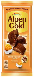 Шоколад Alpen Gold Тропический кокос со вкусом Манго,Ананаса,Маракуйи и возд рис 80г