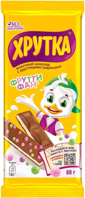 Шоколад Хрутка – это превосходное сочетание нежной молочной начинки, шоколада и разноцветных хрустящих шариков, которое подарит позитивные впечатления.