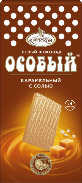 Белый шоколад со вкусом карамели, оттенённой нотой соли, в виде плиток утончённой формы.