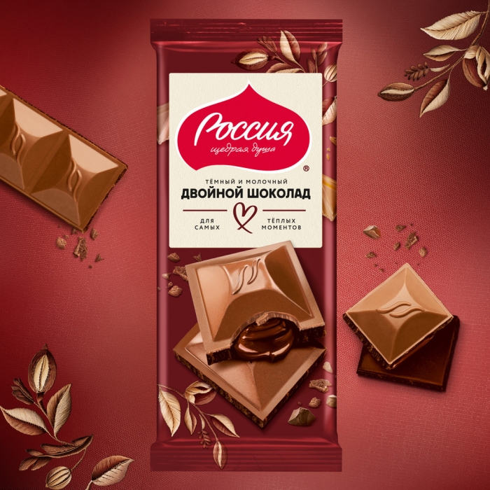 Новый вкус «РОССИЯ» - ЩЕДРАЯ ДУША!(R) Двойной шоколад. Тёмный и молочный шоколад с начинкой