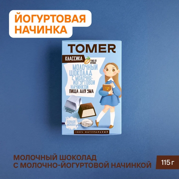 шоколад молочный (сахар; молоко сухое цельное; какао масло; какао тертое; эмульгатор лецитин рапсовый; экстракт ванили); Начинка йогуртовая (сахар, молоко сухое цельное; масло ши рафинированное; какао масло; сыворотка молочная сухая; молоко сухое обезжиренное; жир молочный обезвоженный; йогурт сухой обезжиренный; лецитин рапсовый; ароматизатор натуральный "Йогурт"; экстракт ванили )