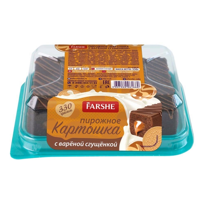 Мука пшеничная хлебопекарная в/с, сахар, яйцо куриное, какао-порошок, рафинированное дезодорированное растительное масло, патока, вода, глюкоза, сухое обезжиренное молоко, начинка кондитерская «Варёная сгущёнка» (сухое обезжиренное молоко, сухая молочная сыворотка, молочно-белковая смесь, сахар, патока, эмульгаторы (лецитин, эфиры полиглицерина и жирных кислот), загуститель (дикрахмалфосфат оксипропилированный), стабилизатор (агар, моно- и диглицериды жирных кислот), ароматизатор «Варёная сгущё