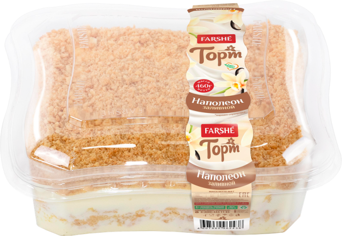 Торт Наполеон, заливной от торговой марки FARSHE – вкусный ароматный десерт, который готовится с добавлением нежного сливочно-ванильного крема. Он отличается восхитительным вкусом и буквально тает во рту. Ароматный заливной торт станет настоящим украшением семейного ужина и подарит гостям отличное настроение.