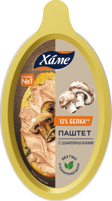 мясные ингредиенты (шкурка свиная, печень свиная, шпик свиной, свинина, мясо куриное механической обвалки); вода питьевая; шампиньоны консервированные (шампиньоны резаные, соль, регулятор кислотности лимонная кислота); крахмал пшеничный; крахмал кукурузный; загуститель ксантановая камедь; антиокислитель изоаскорбат натрия; регуляторы кислотности: лимонная кислота, ацетат натрия, диацетат натрия; смесь посолочно-нитритная (соль, фиксатор окраски нитрит натрия); лук репчатый сушеный; ароматизаторы