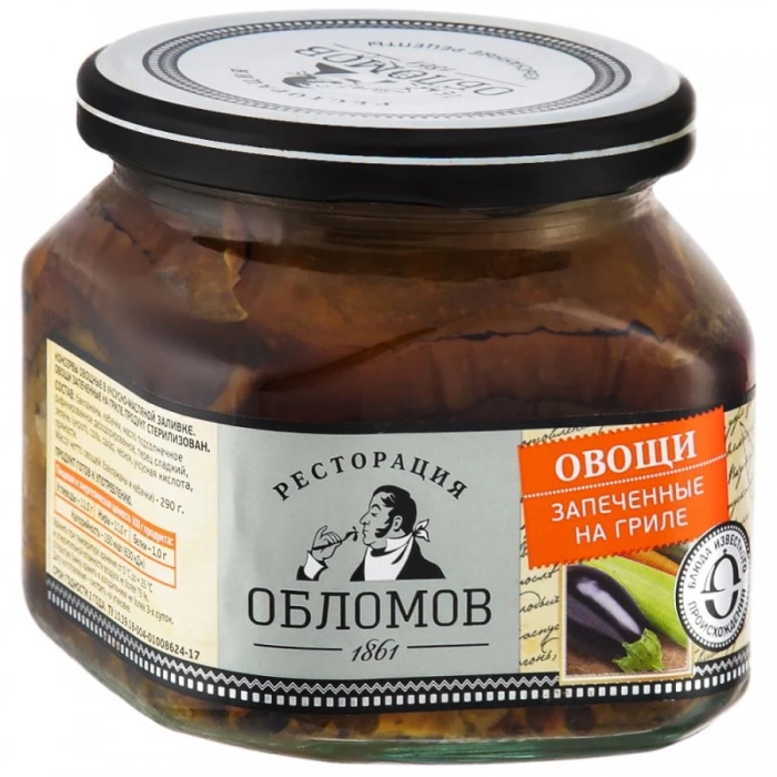 Запеченные на гриле овощи по праву считаются настоящим летним деликатесом — именно такие предлагает для вас бренд «Ресторация Обломов». В основе консервов — приготовленные вручную молодые баклажаны, сладкие перцы и кабачки, дополненные чесноком и пряностями, растительным маслом и капелькой уксуса. В составе нет искусственных ароматизаторов и консервантов — только натуральные компоненты. Подавайте продукт к столу в качестве холодной закуски или как гарнир к блюдам из мяса и птицы.
