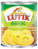 Ананасы кольцами торговой марки Lutik — это спелые тщательно отобранные фрукты, очищенные от кожуры, нарезанные и залитые концентрированным сахарным сиропом.