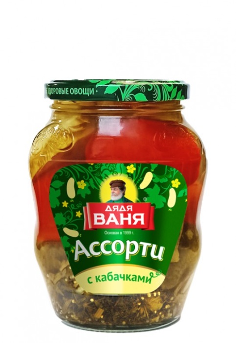 Ассорти Дядя Ваня овощное маринов(огурцы,томаты,кабачки) 680мл
