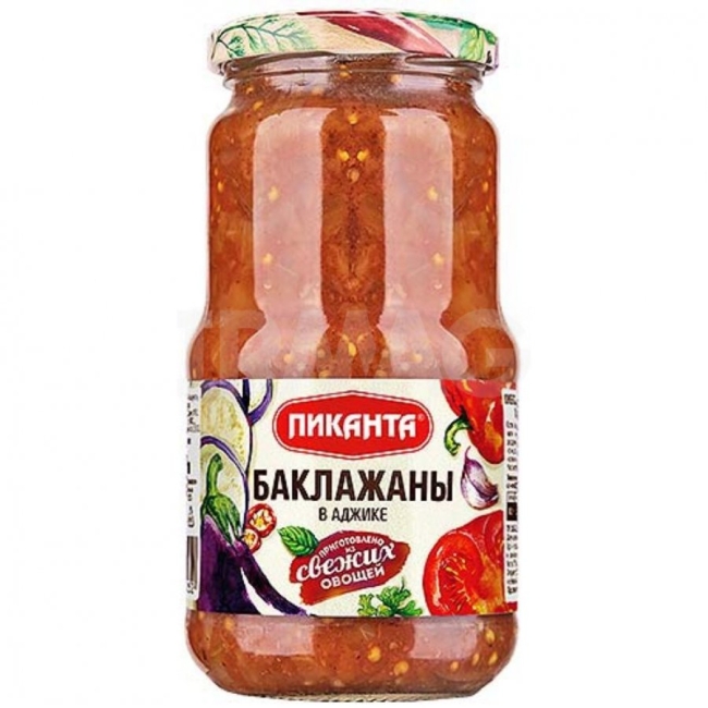 баклажаны, томаты, перец сладкий, масло подсолнечное рафинированное дезодорированное, сахар, томатная паста, чеснок, соль поваренная пищевая, регулятор кислотности – уксусная кислота, пряности.