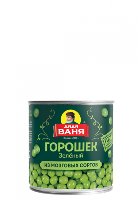 Горошек зеленый, приготовленный по ГОСТ, из мозговых сортов. Выращивается на собственных полях в Краснодарском крае.