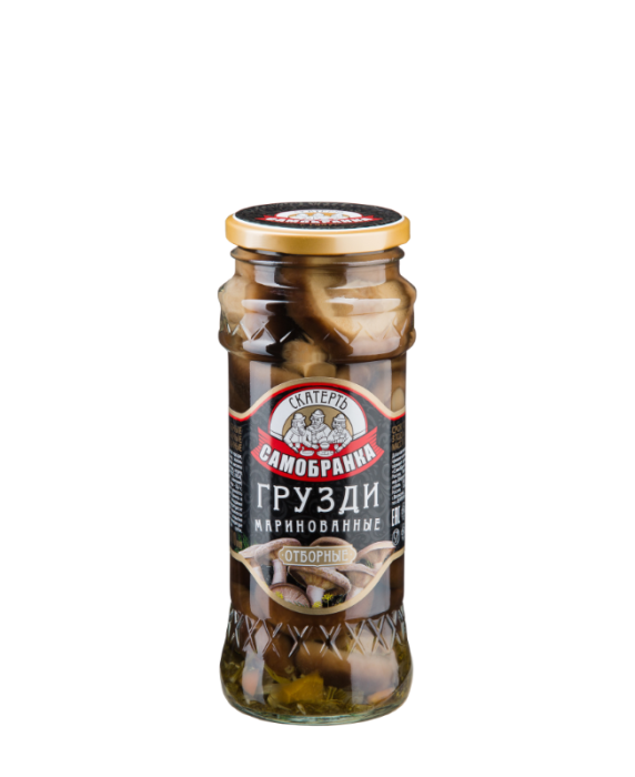 грузди (шиитаке), вода питьевая, сахар, соль пищевая, зелень укропа, лук репчатый, кислота уксусная - регулятор кислотности, морковь сушеная, чеснок, перец душистый горошек