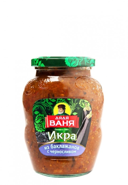 баклажаны свежие,перец сладкий свежий,чернослив сушеный,томатная паста,масло подсолнечное,сахар,соль,чеснок,возможны незначительные следы горчицы, грецкого ореха