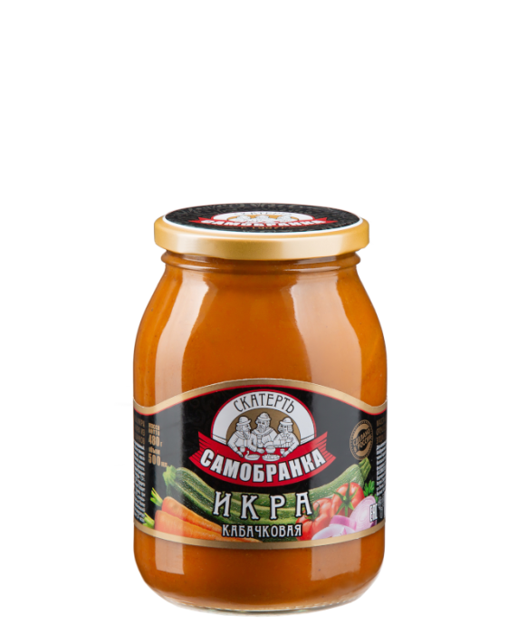 Икра кабачковая СКАТЕРТЬ-САМОБРАНКА – классическая овощная закуска, которую любят взрослые и дети. Сделана из свежих баклажанов, обжаренных в растительном масле вместе с луком, томатной пастой и морковью. Может употребляться отдельно или подаваться ко вторым блюдам.