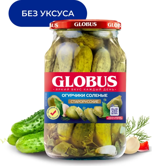 Соленые огурцы GLOBUS подготавливаются по уникальной "бочковой технологии", с использованием только свежей зелени. Хрестящие, отборные огурчики для вашего стола