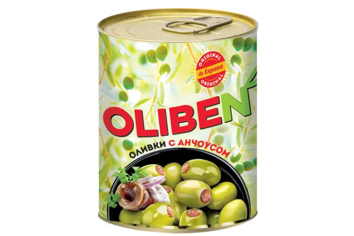 Вода, оливки, паста из анчоусов (анчоусы, загуститель альгинат натрия), соль, усилитель вкуса и аромата глутамат натрия, регулятор кислотности лимонная кислота, антиокислитель аскорбиновая кислота.