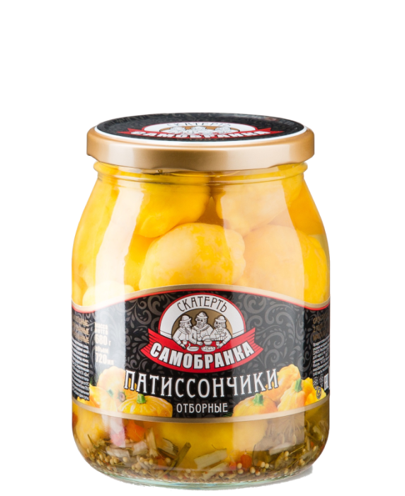 патиссоны, вода, сахар, укроп, соль, паприка, лук, регулятор кислотности - уксусная кислота, семена горчицы, чеснок и др. специи и пряности