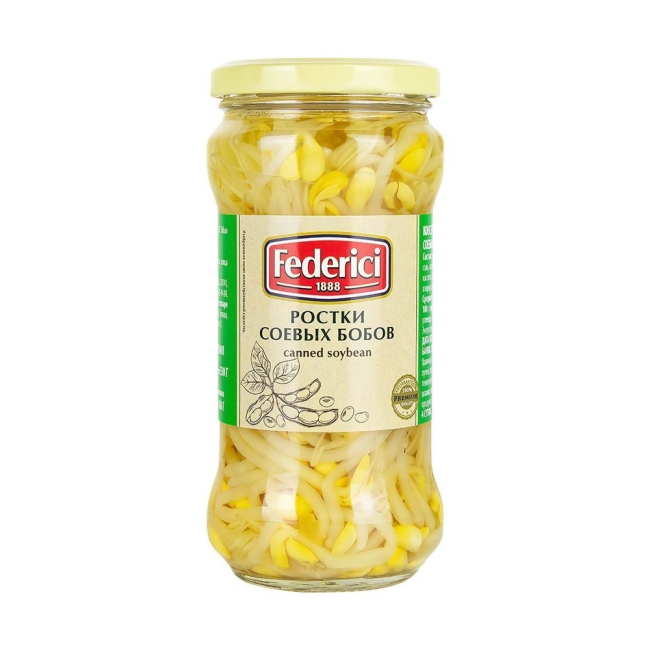 ростки соевых бобов, вода питьевая, соль, сахар, регуляторы кислотности: лимонная кислота, аскорбиновая кислота; уплотнитель: хлорид кальция