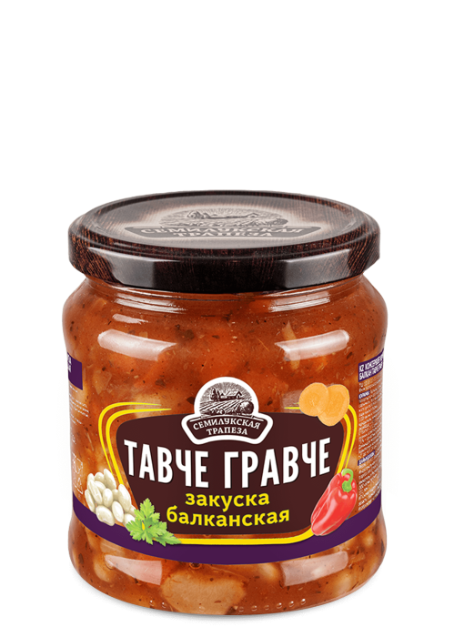 Если вы давно мечтали оказаться в самом центре Македонии – вам непременно стоит попробовать новинку от компании «Семилукская трапеза», неповторимую закуску «Тавче гравче»! Традиционное балканское блюдо готовится из свежей фасоли с добавлением репчатого лука, моркови и спелых перцев, заправленное пастой из отборных томатов станет идеальным дополнением к блюдам из мяса.