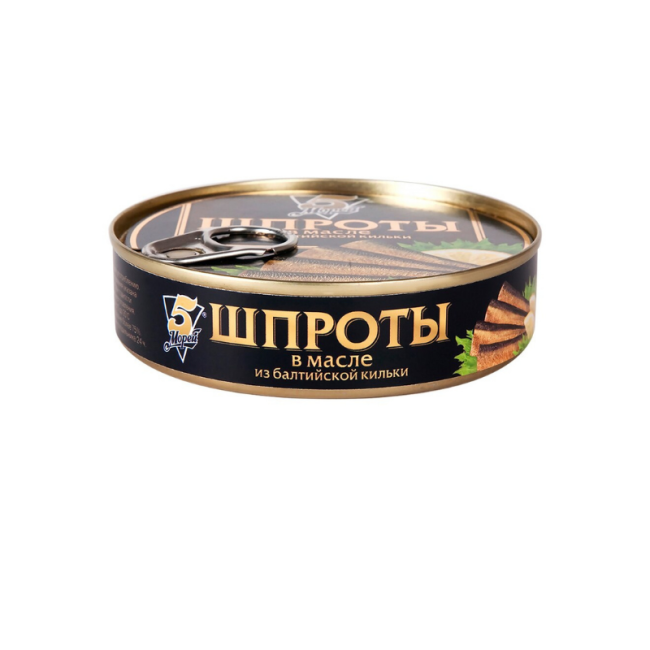 Шпроты 5 морей из салаки в масле ж/б ключ 175гр