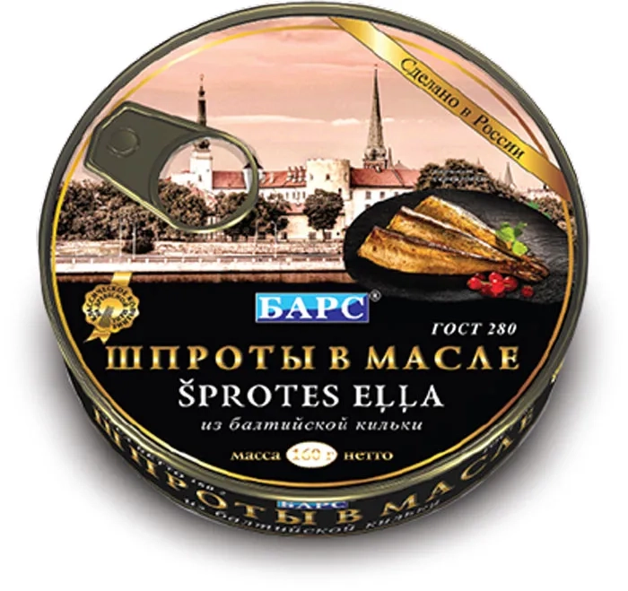 Шпроты Барс в масле из балтийской кильки - это классический рыбный продукт по ГОСТу, сочетающий нежный вкус копчёной рыбы и аромат растительного масла. В каждой жестяной банке с удобным ключом - целая тушка кильки, обработанная с соблюдением традиционных рецептов.
