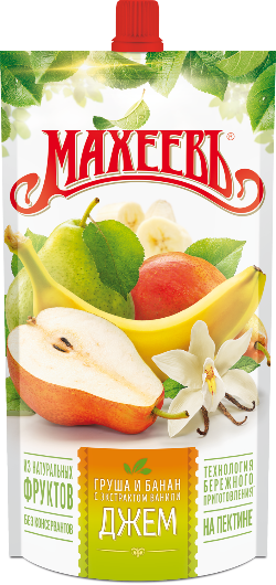 Груша, сахар, глюкозный сироп, банановое пюре, загуститель – пектины, регулятор кислотности – лимонная кислота, экстракт ванили.