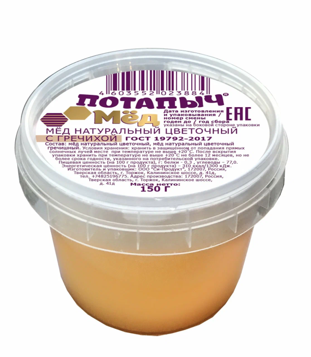 Мед натуральный Потапыч цветочный с гречихой пл/б 150гр