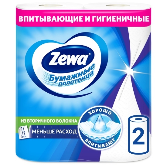 Бумажные полотенца Zewa с дополнительной перфорацией 1/2 листа позволяют экономичнее расходовать продукт и использовать половину листа при небольших загрязнениях. Бумажные полотенца Zewa - универсальный и незаменимый помощник в доме. С их помощью можно легко вытереть пролитую жидкость, отполировать до блеска стекла или посуду, очистить поверхности. Белые 2-х слойные бумажные полотенца без рисунка - 2 рулона в упаковке.