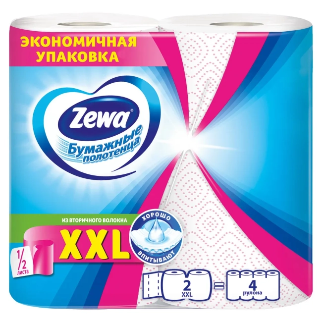 Бумажные полотенца Zewa XXL Декор - это 2 больших рулона в упаковке, равных 4 стандартным рулонам! Бумажные полотенца Zewa XXL удобно хранить в доме, большого рулона хватает надолго, а яркий цветной паттерн украсит ваш интерьер. Двухслойные бумажные полотенца Zewa теперь представлены с дополнительной перфорацией 1/2 листа, которая позволит экономичнее расходовать продукт и использовать при небольших загрязнениях. Бумажные полотенца Zewa станут универсальным и незаменимым помощником в доме. С их