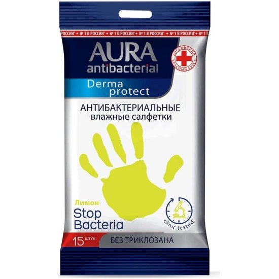 Влажные антибактериальные салфетки AURA Derma Protect идеально подходят для очищения кожи рук, обеспечивая пролонгированную защиту от бактерий до 12 часов. Инновационный антибактериальный комплекс, входящий в состав лосьона, содержит в себе биоразгагаемый компонент Salibact®, который бережно защищает кожу от бактерий и грибов.