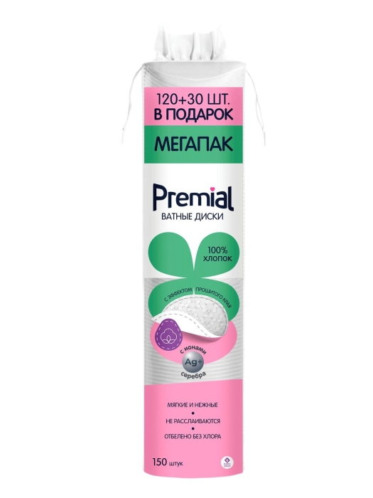 PREMIAL ватные диски особо мягкие и нежные, состоят из 100% хлопка. Плотная структура диска обеспечивает высокую впитываемость, позволяет деликатно и нежно очищать кожу, не вызывая травмирования. Диски PREMIAL изготавливаются из полотна высочайшего качества, которое отбеливается без хлора. Благодаря технологии «Water Jet» (полировки водой) достигается Эффект "прошитого края", который на 100% исключает расслаивание. Тончайший нано-слой ионов серебра придает антибактериальные свойства! Все диски и