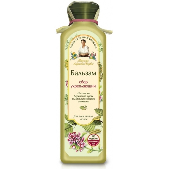 Березовая вода, входящая в состав бальзама, является эффективным средством, укрепляющим корни волос, а бережно собранные сибирские травы устраняют ломкость, укрепляя волосы по всей длине.