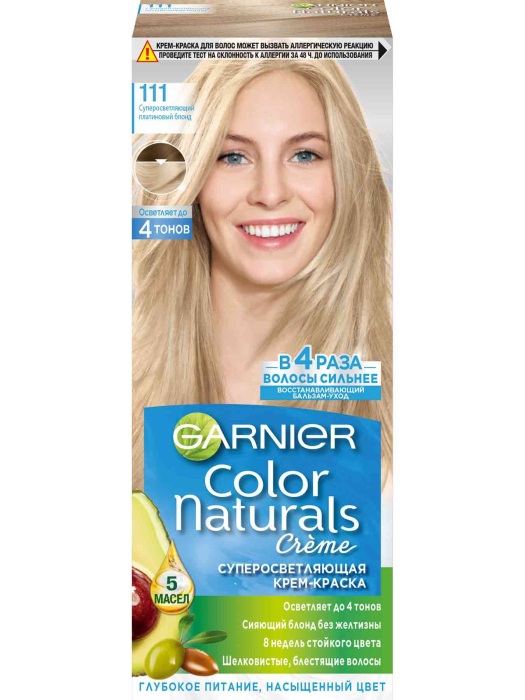 Стойкая крем-краска c ценными маслами оливы, авокадо, арганы, клюквы и ши для питательного ухода во время окрашивания. Осветляет до 4 тонов, обеспечивает чистый платиновый оттенок без желтизны, разглаживает и придает волосам блеск. Густая кремовая текстура краски проникает глубоко в структуру волос, обесцвечивает и одновременно окрашивает их. Специальные нейтрализующие компоненты в формуле защищают цвет от появления нежелательных желтых тонов. Питательные масла создают на поверхности волос барье