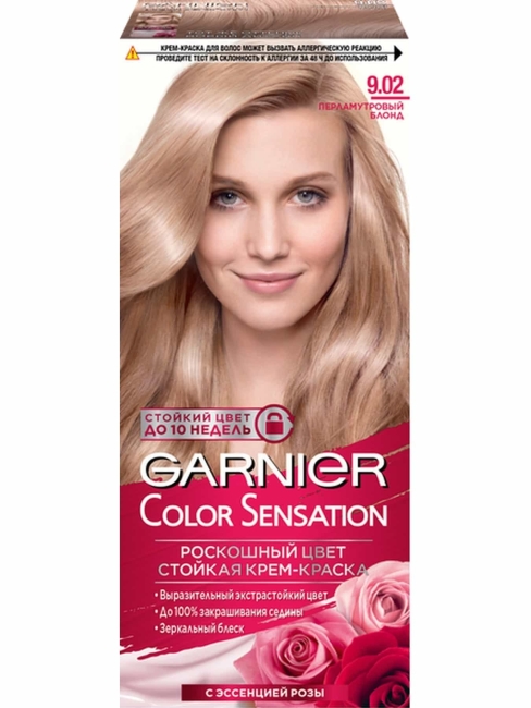 Крем-краска Garnier Color sensation Перламутровый блонд для придания волосам многогранного роскошного цвета и ослепительного блеска, обеспечивает до 100% закрашивания седины и стойкость результата до 10 недель. Интенсивные пигменты в высокой концентрации дарят волосам насыщенный цвет и способствуют точному попаданию в тон. Перламутровые частицы усиливают блеск, создавая на волосах эффект зеркального полотна. За счет ухаживающего действия эссенции розы Ваши локоны приобретают мягкость и шелковист
