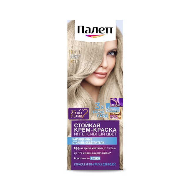 Благодаря тройной системе ухода стойкая крем-краска для волос Палетт обеспечивает бережное окрашивание. С аммиаком. Комплекс с Кератином, Пантенолом и Аргановым маслом проникает глубоко в структуру волоса, восстанавливая, увлажняя и питая его изнутри. Активные вещества оказывают смягчающее и укрепляющее воздействие, делая волосы гладкими и блестящими.