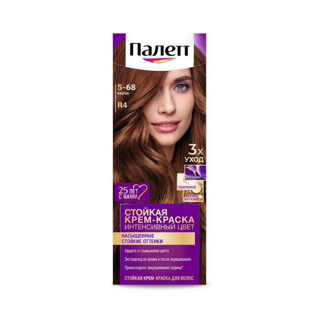 Благодаря тройной системе ухода стойкая крем-краска для волос Палетт обеспечивает бережное окрашивание. С аммиаком. Комплекс с Кератином, Пантенолом и Аргановым маслом проникает глубоко в структуру волоса, восстанавливая, увлажняя и питая его изнутри. Активные вещества оказывают смягчающее и укрепляющее воздействие, делая волосы гладкими и блестящими.