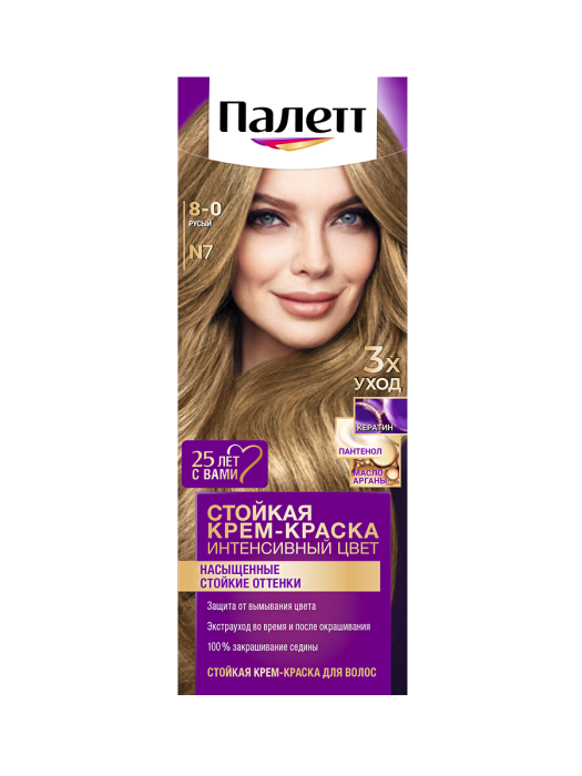 Благодаря тройной системе ухода стойкая крем-краска для волос Палетт обеспечивает бережное окрашивание. С аммиаком. Комплекс с Кератином, Пантенолом и Аргановым маслом проникает глубоко в структуру волоса, восстанавливая, увлажняя и питая его изнутри. Активные вещества оказывают смягчающее и укрепляющее воздействие, делая волосы гладкими и блестящими.¶Формула с высокоинтенсивными пигментами придает волосам насыщенный цвет и защищает его от вымывания. До 100% без седины. Надолго!