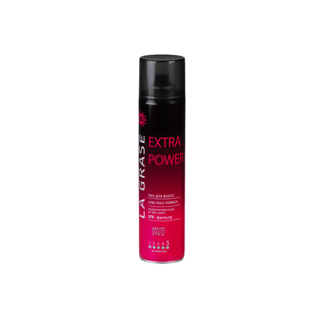 Лаки для волос “LA GRASE” - идеальное средство для женщин, которые хотят придать волосам объем без утяжеления и склеивания. Эффективное средство, произведенное в соответствии с европейскими стандартами качества по формуле LONG-HOLD FORMULA, обеспечивает волосам мегафиксацию до 48 часов, предназначен для создания причесок любого уровня сложности. Лак для волос ультратонкого мелкодисперсного распыления, обеспечивает фиксацию даже в жаркую, влажную погоду или холодные ветреные дни. Формула с мульти