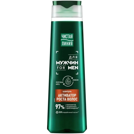 Чистая Линия шампунь ДЛЯ МУЖЧИН для активации роста волос с перечной мятой и кофеином 400 мл
