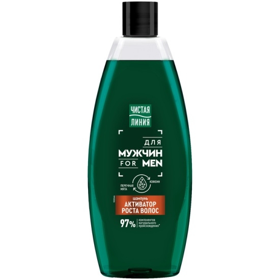 Мужские волосы и кожа головы нуждаются в особом уходе. Чистая Линия представляет новую серию продуктов для мужчин. Шампунь содержит 97% компонентов натурального происхождения, бережно очищает волосы и кожу головы и способствует активации роста волос. Перечная мята и кофеин в составе оказывают комплексное воздействие: