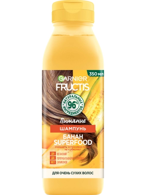 Шампунь с биоразлагаемой формулой, на 98% состоит из натуральных компонентов. Оставшиеся 2% - ингредиенты, обеспечивающие приятную консистенцию средства и стабильность формулы. Шампунь выпускается в упаковке, подлежащей вторичной переработке. В его составе нет силиконов, синтетических красителей, веществ животного происхождения. Шампунь легко превращается в нежную воздушную пену и деликатно очищает волосы и кожу головы. Банан и масло кокоса в составе обеспечивают волосам интенсивное питание и ув