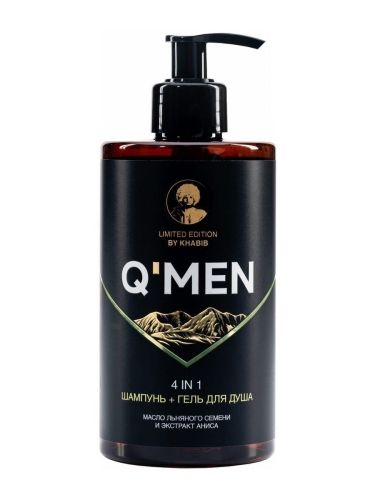 Многофункциональный Шампунь - гель для душа Q'MEN 4 в 1 - эффективно работает как шампунь, гель для душа, кондиционер для волос, а также средство для очищения и ухода за бородой. Масло льняного семени в составе эффективно борется с сухостью кожи, делает волосы мягкими, ухоженными и увлажненными. Экстракт Аниса в составе обладает антибактериальными свойствами и продлевает свежесть. Отлично пенится и легко смывается водой. Не сушит кожу. Подходит для всех типов волос и кожи.