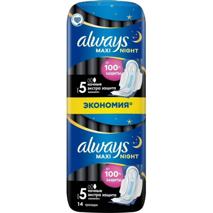 Гигиенические прокладки Always Maxi Normal обеспечивают защиту и комфорт, когда вам это необходимо больше всего. Гигиеническая прокладка Always Maxi Night – это прокладка с дополнительной толщиной, которая обеспечивает до 100 % защиты благодаря своим защитным барьерам от протекания по всей поверхности и дополнительному впитывающему внутреннему слою в центре. - Гигиенические прокладки, обеспечивающие до 100 % защиты. - Защитные барьеры от протекания по всей поверхности. - Ультравпитывающий внутре