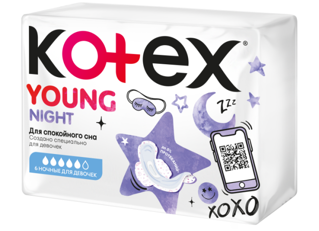 Обновленные женские ночные гигиенические прокладки Кotex Young – наша лучшая защита и комфорт для девочек в течение всей ночи! Благодаря уникальному верхнему слою и дополнительному абсорбирующему компоненту, прокладка впитывает быстро и на 50% больше, обеспечивая ощущение сухости и усиленной защиты. Длина прокладки разработана специально для девочек, она на 20% длиннее дневной прокладки для дополнительной защиты ночью.