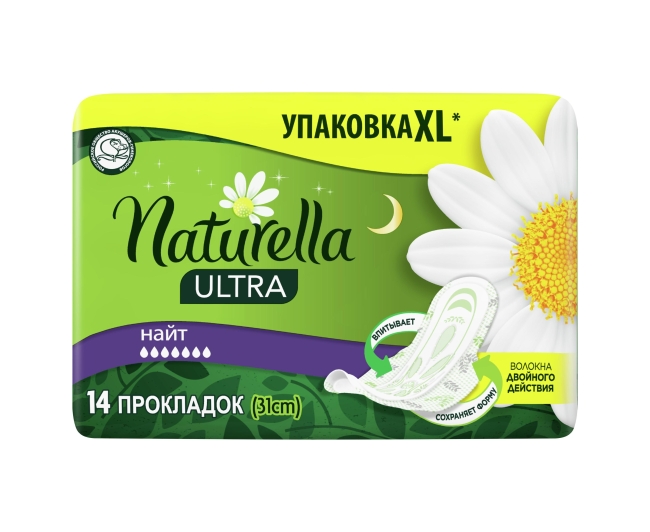 Мягкие гигиенические прокладки Naturella Ultra Night «Ромашка» с крылышками, помогающими надежно фиксировать прокладку, обеспечивают защиту кожи в интимной зоне в ночное время при обильных выделениях. • Заботятся о вашей коже, одобрены дерматологами. • Более длинная задняя часть (по сравнению с прокладками Naturella Ultra Normal и Maxi) для дополнительной защиты при обильных выделениях в ночное время. • Гигиенические прокладки обеспечивают защиту и заботятся о самой деликатной коже. • Содержат у