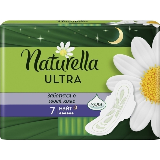 Мягкие гигиенические прокладки Naturella Ultra Night «Ромашка» с крылышками, помогающими надежно фиксировать прокладку, обеспечивают защиту кожи в интимной зоне в ночное время при обильных выделениях. • Заботятся о вашей коже, одобрены дерматологами. • Более длинная задняя часть (по сравнению с прокладками Naturella Ultra Normal и Maxi) для дополнительной защиты при обильных выделениях в ночное время. • Гигиенические прокладки обеспечивают защиту и заботятся о самой деликатной коже. • Содержат у